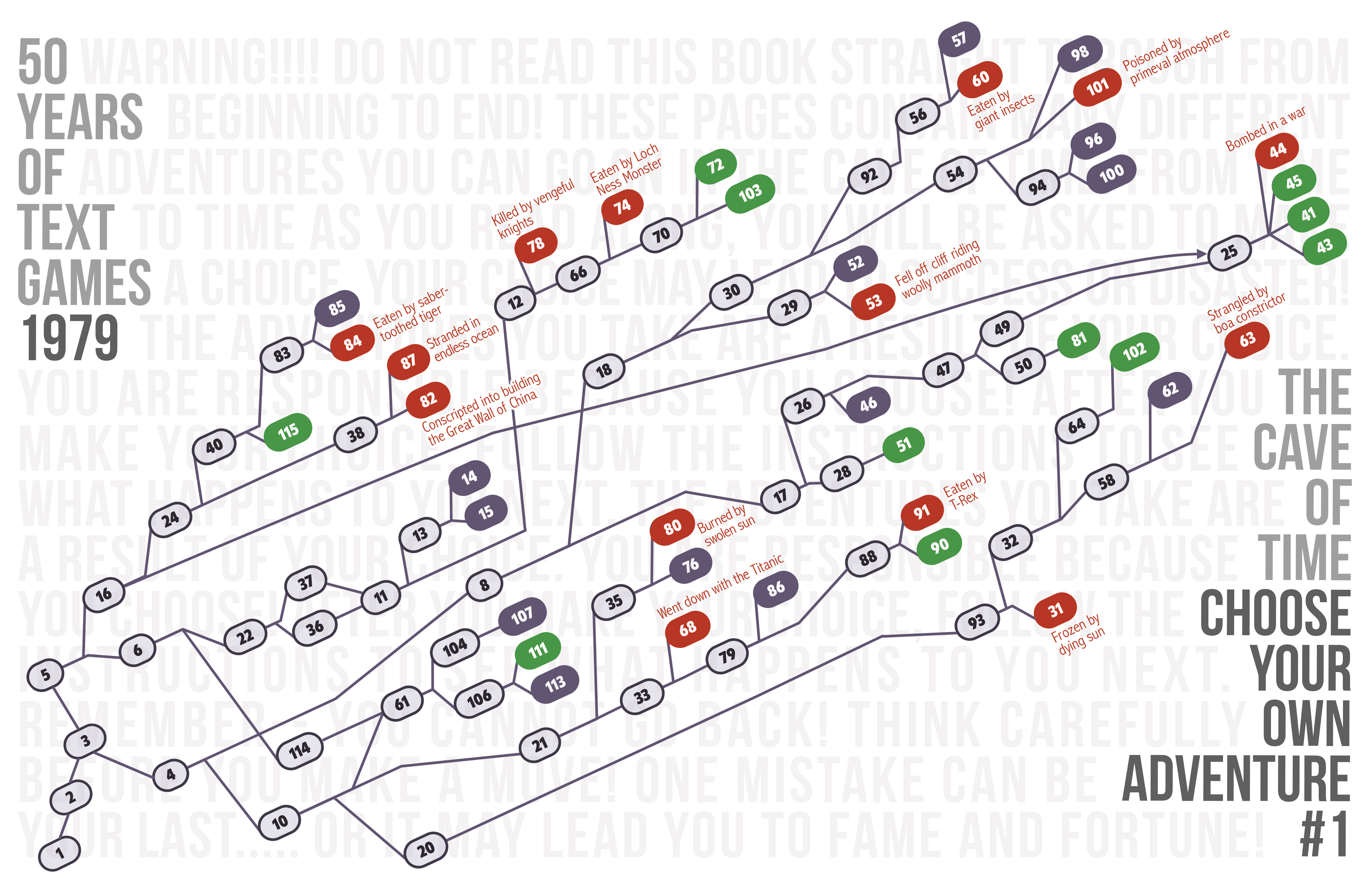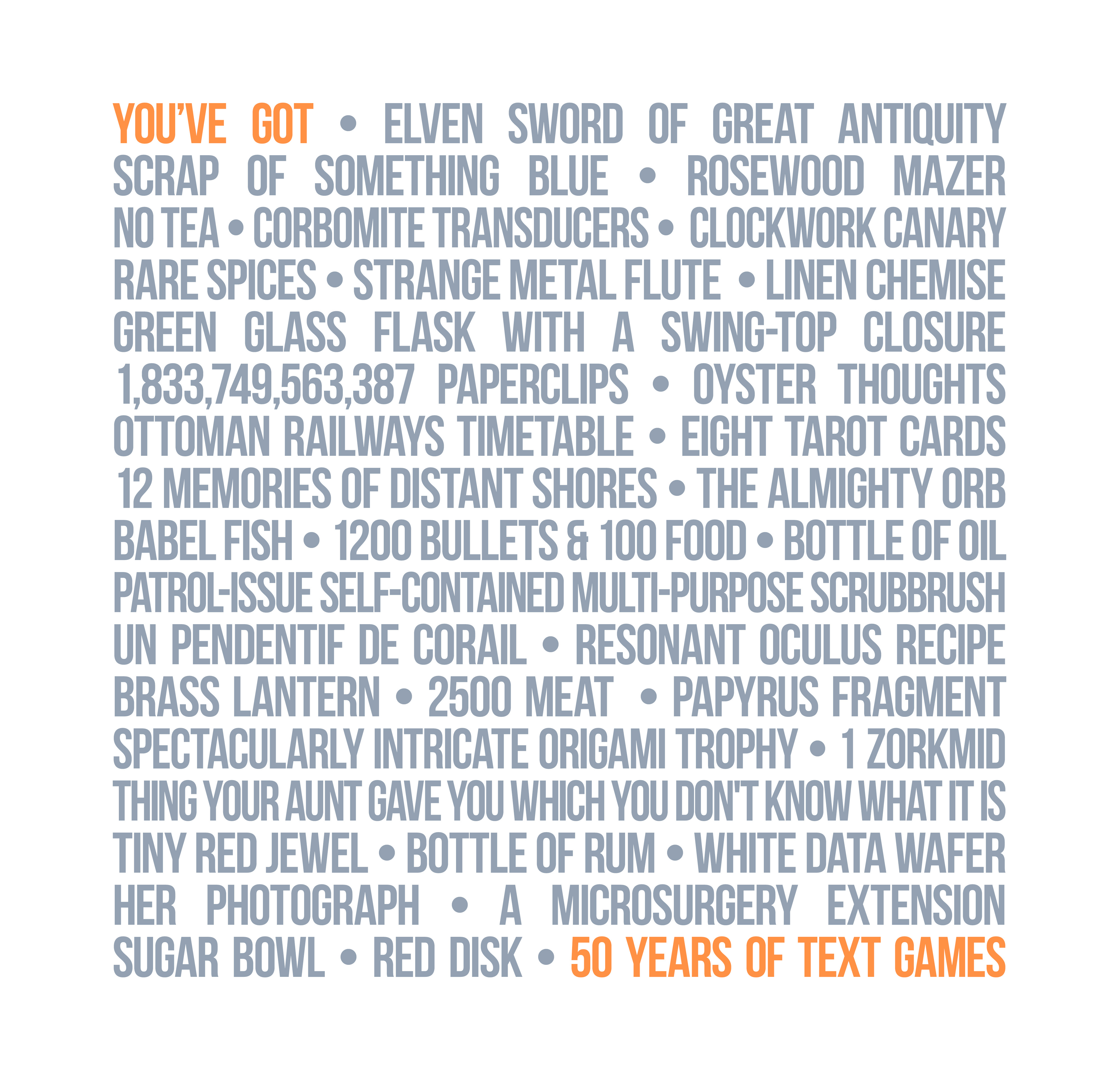 Posters created for 50 Years of Text Games and the 50 Years Merch Store. These are presented under the CC-BY 4.0 license, meaning you are free to share, copy, and redistribute these works as long as you credit the original author (please credit as "Aaron A. Reed - 50 Years of Text Games").